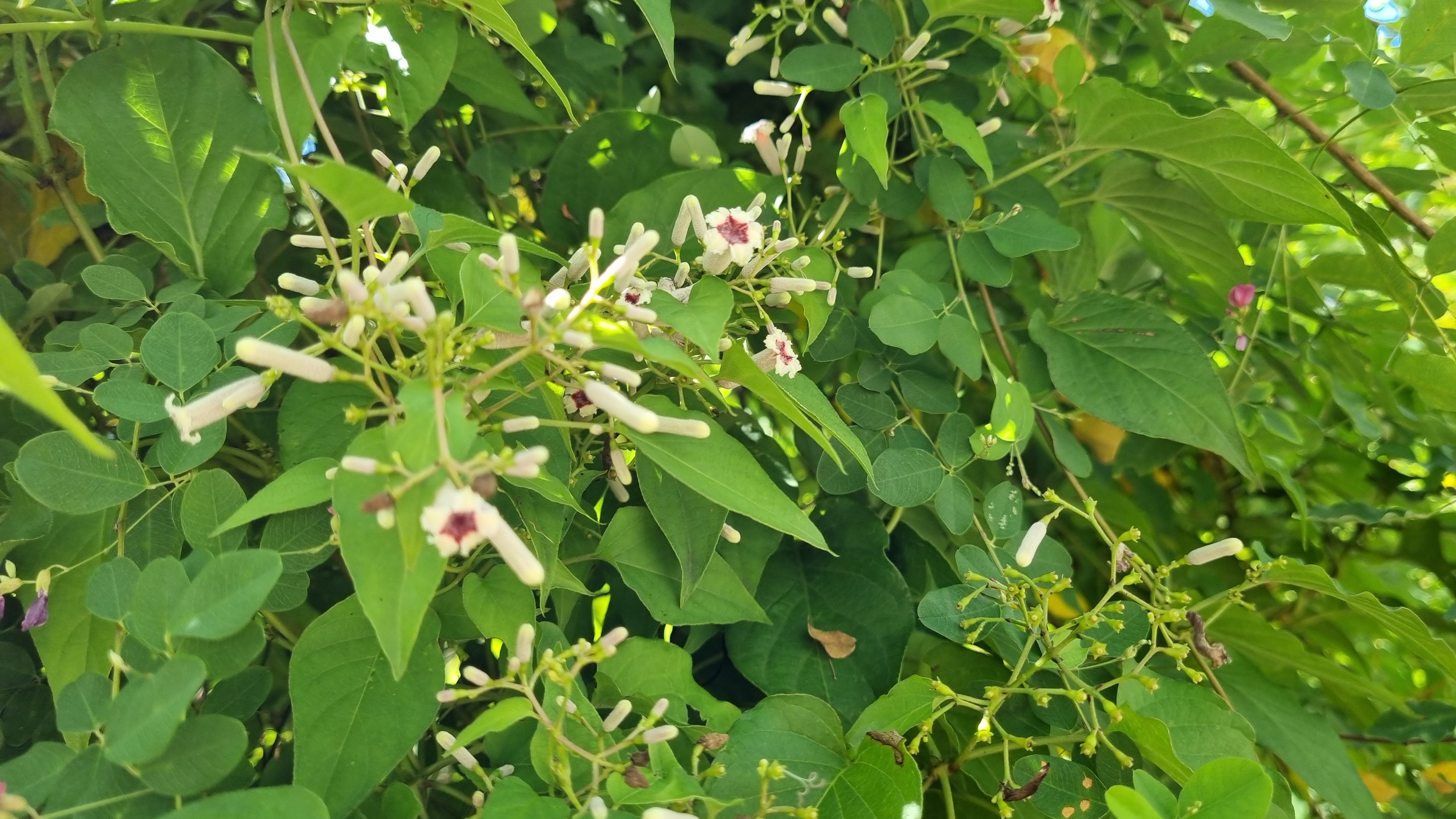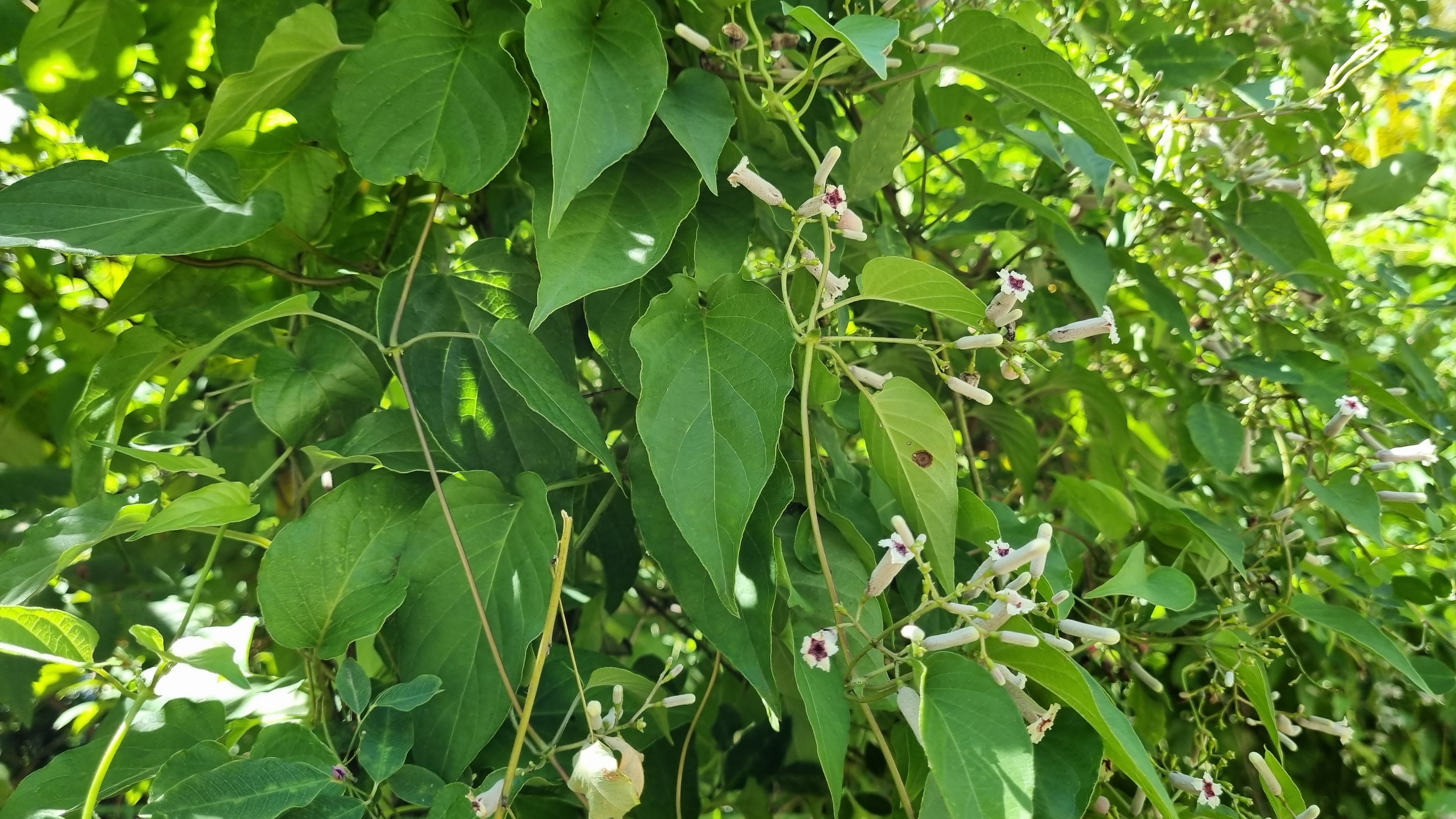 7-8월 백색, 자주색으로 피는 덩굴성 여러해 식물로 혼자일때는 바로 기어 나가나 기댈것이 있으면 왼쪽으로 감아 오르는